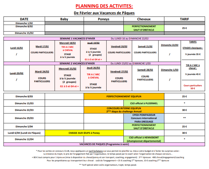 PLANNING DES ACTIVITES hors forfaits 2025-2026